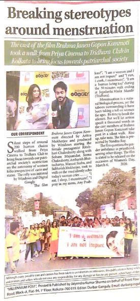 Thank you all the E-Papers for covering our silent rally against the age-old myth of women being impure at the time of the menstrual cycle and tell the world how beautiful she is…