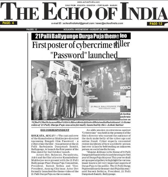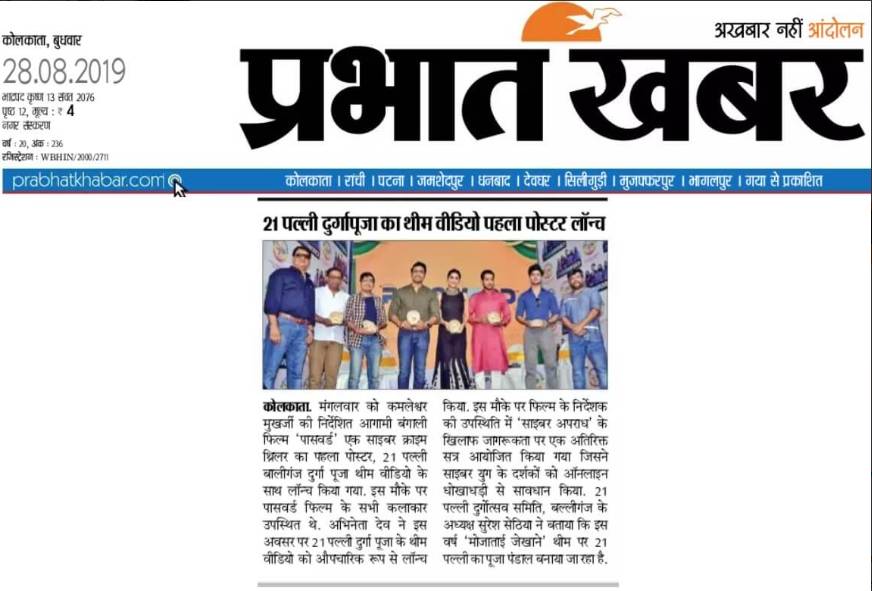 Poster launch of the upcoming movie “Password” of superstar Dev, at 21 Pally Puja premises, on the same day the theme video of 21 Pally puja was also launched. MfunL is the proud social media partner of 21 Pally Puja. The grand event was covered by leading TV Channels.